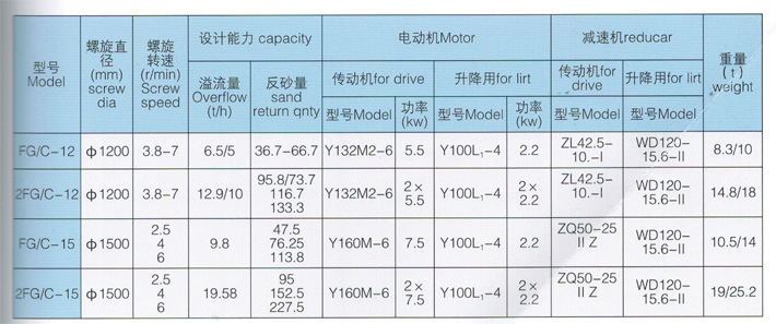 主要用于金屬選礦流程中對礦漿進行力度分級,根據螺旋數量可以分為單螺旋,雙螺旋;根據螺旋葉片浸入溢流面深度可分為高晏式、沉沒式兩種。前者用于溢流粒度0.83-0.15mm的礦石分級,后者用于溢流粒度0.15-0.07mm的礦石分級。